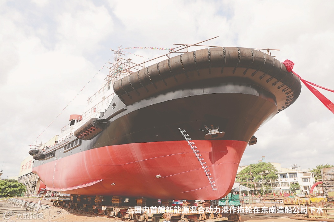 在东南造船公司,国内首艘新能源混合动力港作拖轮已经下水,码头舾装作业正如火如荼。“预计8月交船,未来将用于厦门港区。”该船项目经理张俊俊说。
