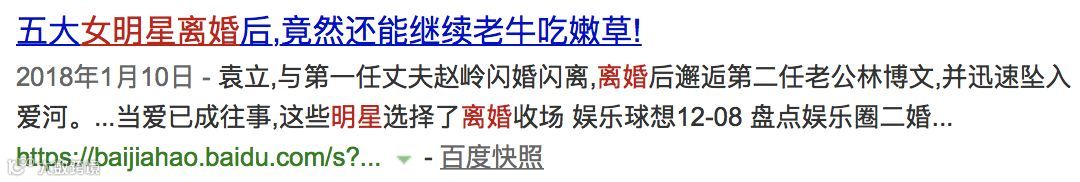 随手一搜“女明星离婚”就是充满恶意的价值观和低俗不堪的观点。