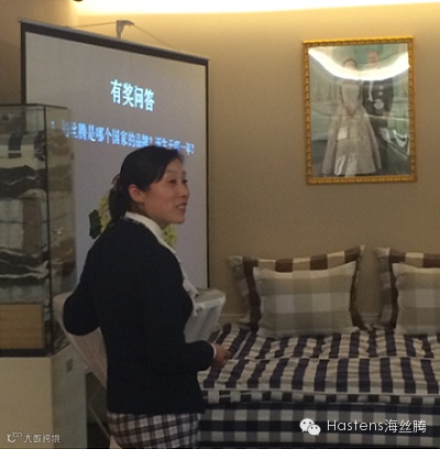 活动当日,鲜艳的摆花、新鲜的水果,以及纯净的蓝白格床具,让嘉宾们在炎热的夏日午后仍旧感觉清爽、惬意。在海丝腾睡眠大使的介绍下,嘉宾们对海丝腾的品牌历史、传统工艺以及经典床具等进行了初步了解,并交流、分享了芳香精油助益睡眠的一些小妙方。之后的有奖问答环节中,现场气氛则更为热烈,嘉宾们争相回答工作人员提出的问题,纷纷表示出对海丝腾品牌与产品的兴趣和喜爱。