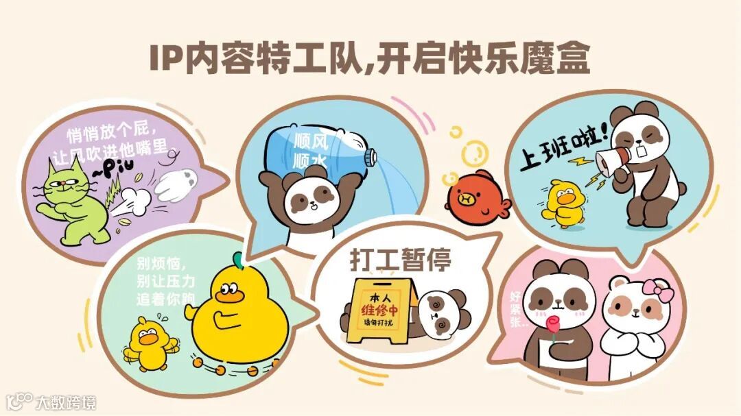 一本正经做宝宝的治愈系成长IP咖咖熊和可咖熊,一本神经做自己的骚萌神经兔,温暖有力量的大暖虎,吞噬负能量的雪怪米戈、骚萌犀利的职场卷王卷卷猫、鸭力一丁点儿大的自洽神鸭晃晃鸭、桃气无敌可爱绿桃猴、爱做发财梦的佛系IP猪多余。他们的使命是希望在当下快节奏的生活里,人们都能葆有童心,做个有趣的大人,去发现生活,分享快乐!