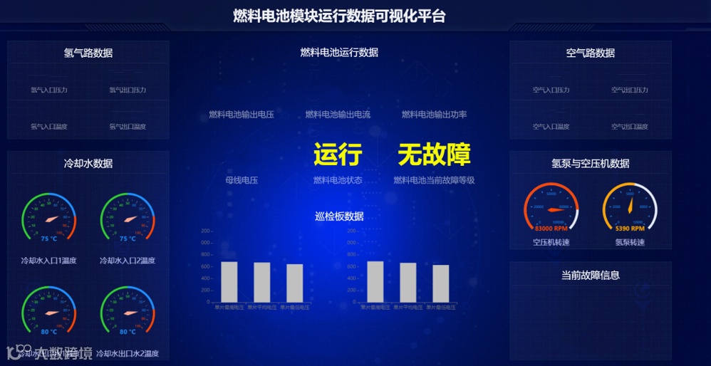 可视化平台管理系统能够提供准确、直观的数据展示,帮助研发人员快速了解系统状态;及时发现并解决潜在问题,对燃料电池进行故障诊断;识别燃料电池运行趋势,支持基于数据的决策,提高燃料电池的运行效率及可靠性;通过令人信服的可视化数据,研发团队还可以更好地进行相关试验,验证新模型或新技术的有效性,推动燃料电池技术创新与进步。