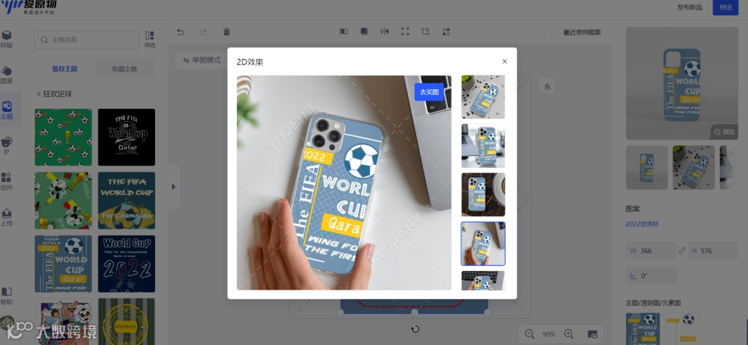2、我们已经将这个主题的图案创作出来了。您也可以使用我们的新品生成器上传您的样版,挑选这个主题图案,一秒就设计出有卖点的主题新品来啦!