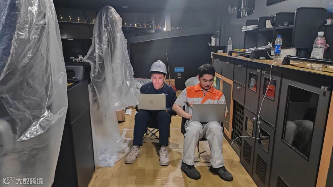电力推进事业部项目人员正在新能源船舶调试现场,为确保第二天负载试验顺利开展,项目人员挑灯夜战进行设备调试,全力满足各项试验要求。