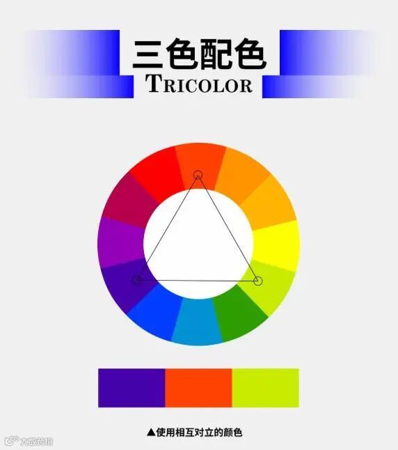 选择对比色进行配色,效果清晰、醒目,又不至于互补色那么刺眼,拥有极高的视觉效果之余能给画面带来跳跃感。