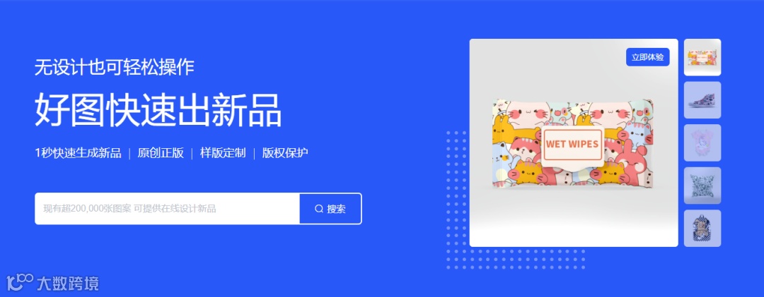 配套的新品生成器,可实现1秒快速出新品。0门槛,小白也可上手,人人都是设计师。从根本上解决了企业选图不直观、设计新品效率低等问题,实现低成本、海量的出新品。大大提升每月新品开发效率。自研算法,将仿真合成效果从行业普遍水平的70%提升至90%。生成的新品效果图可免费进行最长3个月的推广,有市场反馈后再买授权,新品开发省时省力更省心!