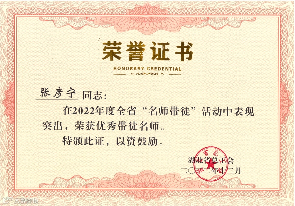 日前,湖北省总工会下发《关于命名2022年湖北省产业工人培训示范基地暨表扬2022年湖北省优秀带徒名师、学习型职工的通报》,中国船柴宜柴公司首席技师张彦宁被授予“湖北省优秀带徒名师”荣誉称号。