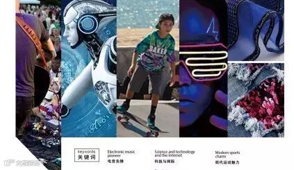 本系列色彩以灼黄色、维多利亚蓝、煤黑色及浓烈的爆竹色为主色,配以芯片灰、冬青绿、阿拉斯加蓝与饱和红,采用对比色明亮色彩营造活力先锋文化氛围。