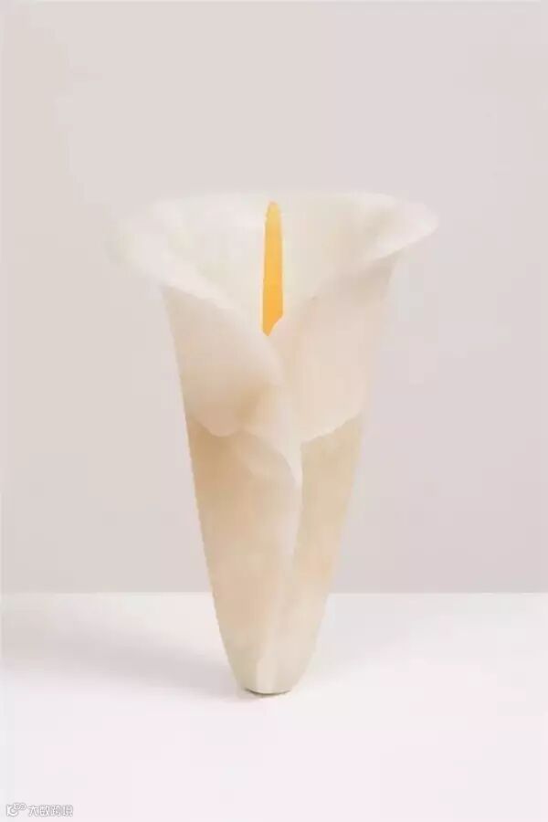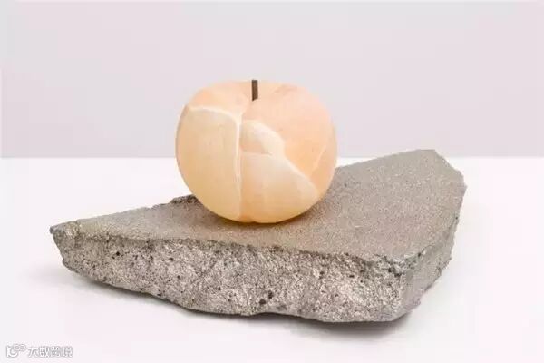 利用精致易裂的大理石雕塑出的水果与花朵,配合磨砂玻璃和树脂的装置陈列,让其纹理及材质的特点呈现出一种沉静感性的视觉体验。