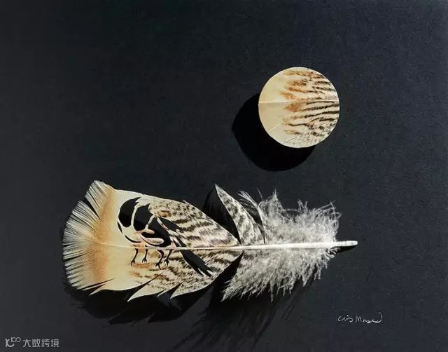 Chris用于创作的羽毛,全是自己捡拾得来的