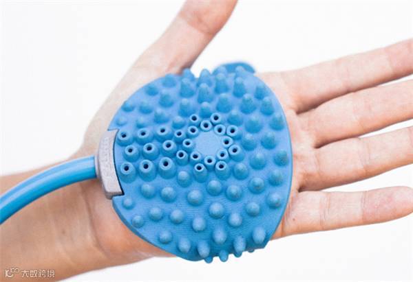 此外,由于它的材质相当轻巧柔软,使用者可以简单控制出水量,而最大的好处是,因为它刚好跟手掌一样大,绑在手上也不会卡,所以要边帮宠物洗澡,边抓住安抚它们变得容易许多。