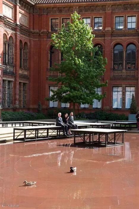英国维多利亚与艾伯特博物馆(缩写 V&A )里面安置了一组特别的平台,据设计师 Frida Escobedo 称,它来源于古代墨西哥建在河流上的阿兹特克城(Aztec city)。