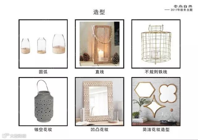 造型更多的也是从几何元素出发,以弧线、直线、不规则线条为主;还有镂空、凹凸及一些花纹造型,体现自然系家居产品的舒适与随性。