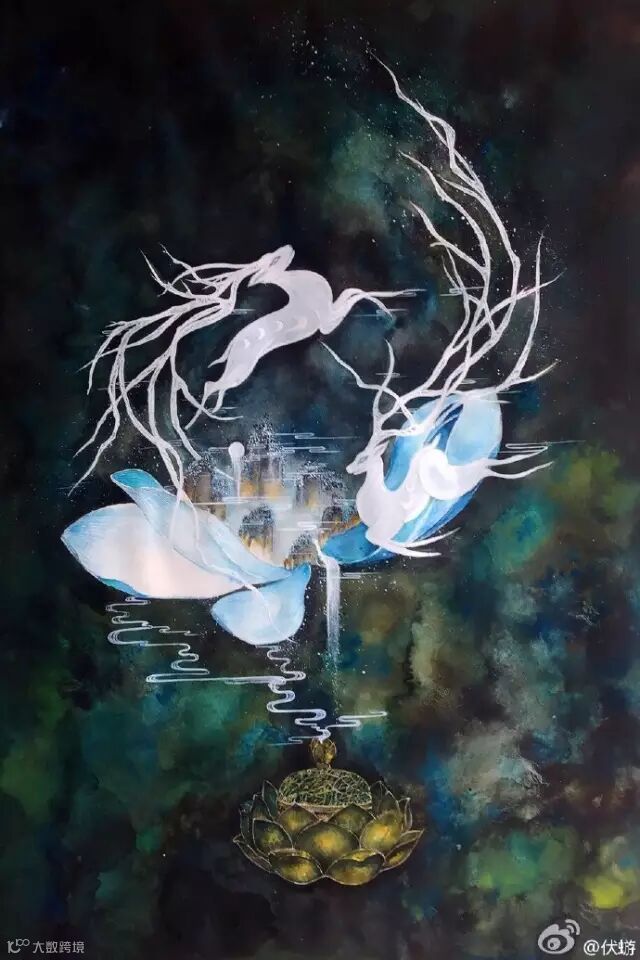 他的作品在呈现中式韵味的同时,又注入了作为一个90后新的艺术形式。所以跟传统的中式水墨有所区别,将水墨画诠释出另一种美。