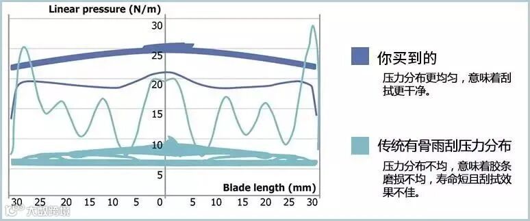 市面上传统雨刮采用单层钢片设计,存在压力点分布不合理的问题,时间一长就容易出现“空刮”的情况发生。