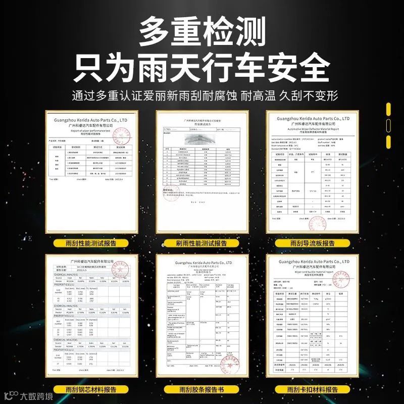 爱丽新无骨静音雨刮,严格按照国家标准研发生产,毕竟车主在无法看到产品时,数据才是能证明产品的实力!