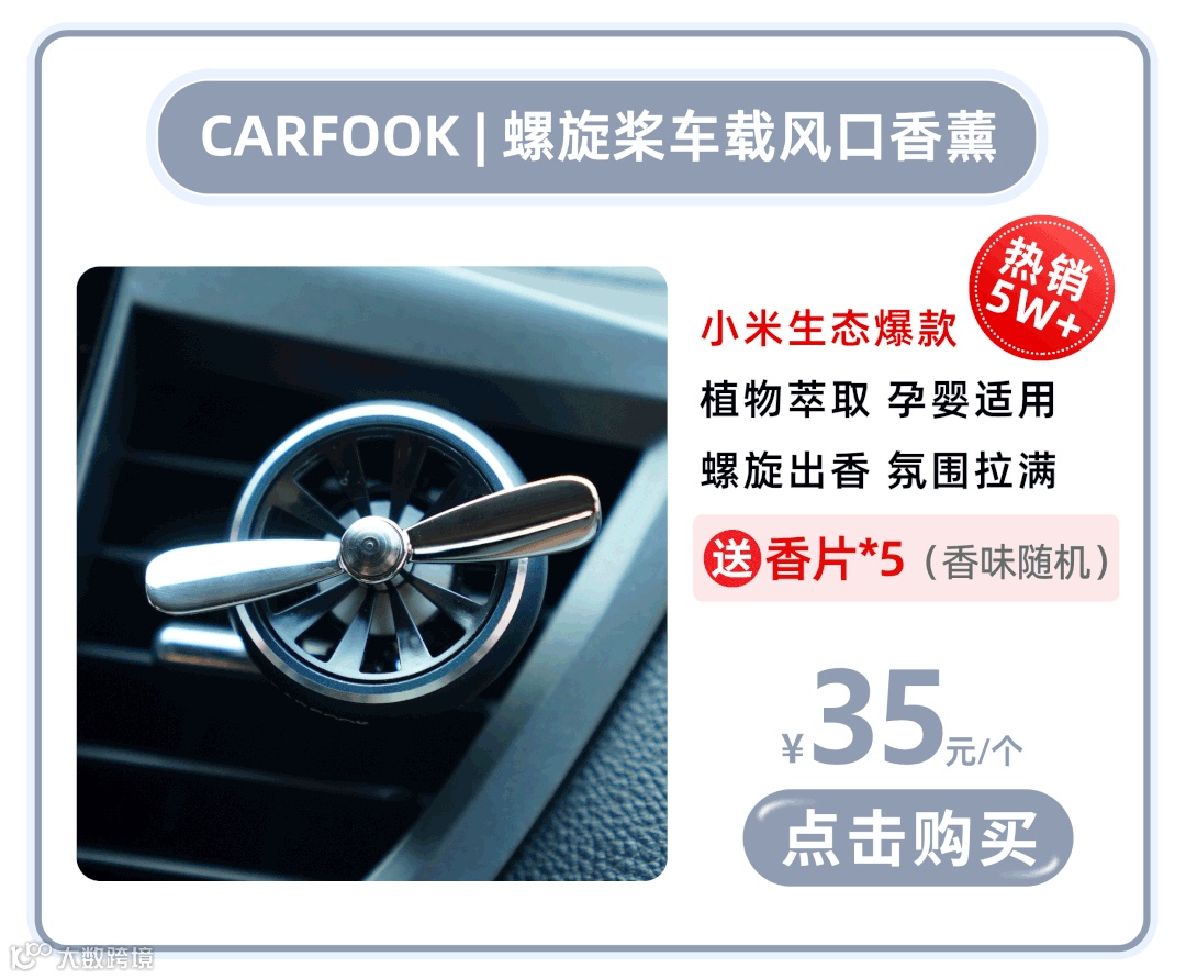 今天介绍的这款螺旋桨香薰,出自知名汽车国货品牌——车大福(CARFOOK),国球运动员顾玉婷倾力代言。