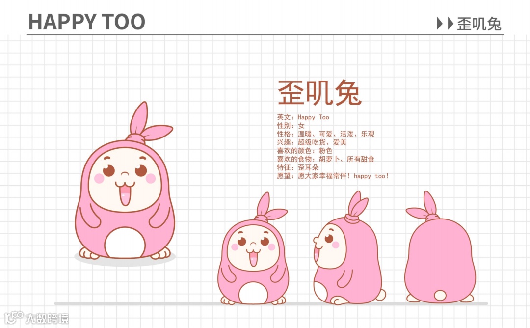 2.具有与众不同的兔子IP识别度, Y型耳朵,颜色是与众不同的粉色 。