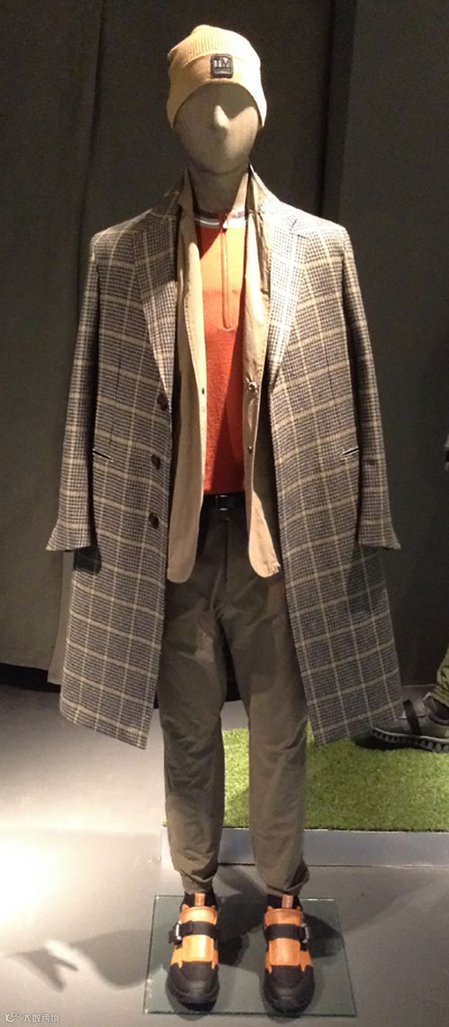 全套服装以应对都市浪潮,时髦和性能之间的紧密联系。这些大衣代表了新一代产品,融合量体裁衣和探索。形状和版型是古典的,但更精确的外观。揭露了许多独特的运动推动的细节和出乎意料的表现特征,原因在于时髦现代的表面,带有分层隔膜或是表面防水处理。在活动的运动装上这一典型的技术处理是十分常见的,但它们被用于超细羊毛,带有不同格子图案的设计,或是明显的有形结构,例如装甲和经向斜纹形状。