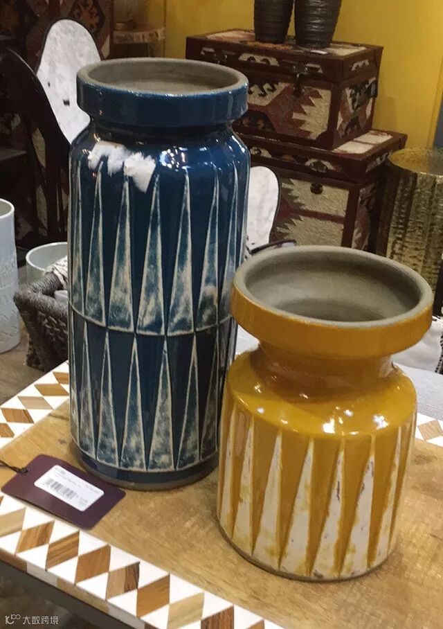 展会上,可以看见很多强势的、有角的50年代风格形状的花瓶,用来突出图案、釉面和浮雕。