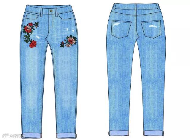 复古高腰牛仔裤,通常采用复古的石洗面料。