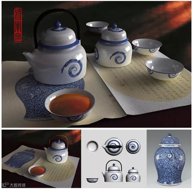 “中国文化”的精髓在于不墨守成规,在于它的开放性,这正恰如其分的与不拘小节、胸襟广阔的大将情怀相契合,始于元朝的“将军罐”的造型显得挺拔向上,气魄宏伟,是蒙古的象征,自古以来都受老百姓喜爱,故此采用“将军罐”的造型来塑造这款茶具,取名为“将军令”。 在纹样装饰上,吸取元代民窑青花自由、随心的表达方式,用流动的线条、自由的笔触,表现出“中国文化”的自主性,这形同“水纹”的符号,展现出一种分外的优美,一种清醒的力量,使静态的茶具,潜移默化地愉悦着人们的心灵。这款餐具不仅把蒙古文化的深刻内涵表露无疑,并且可以体现出用此茶具者的大将风度,作为旅游产品自用收藏或者是送亲朋好友非常适合。