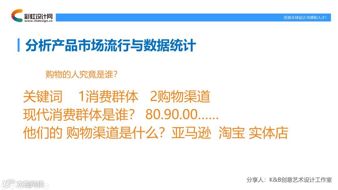 第一点,怎样分析我们的产品市场,现在流行什么?数据和资料从哪里找?大家都知道,市场就是公司的命脉和未来。设计也是公司的灵魂。