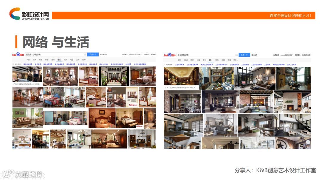 接下来要讲的就是网络与生活。给大家推荐几个浏览器,大家都很熟知的,百度大家都知道,还有谷歌,我们也许是已经被我们国内所限制了,如果大家可以通过自己的方面能浏览的话,那不妨试一下。还有淘宝,还有花瓣,还有国外的一些网站,那通过这些网站搜索我们想要的关键词,像这张图一样,就会显示出这类的图片供大家参考。