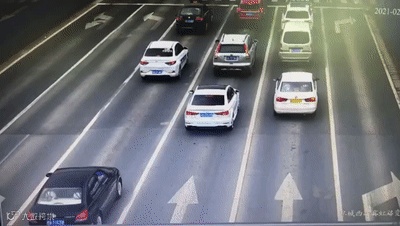 ▲驾驶员没踩住刹车,车辆追尾前车。