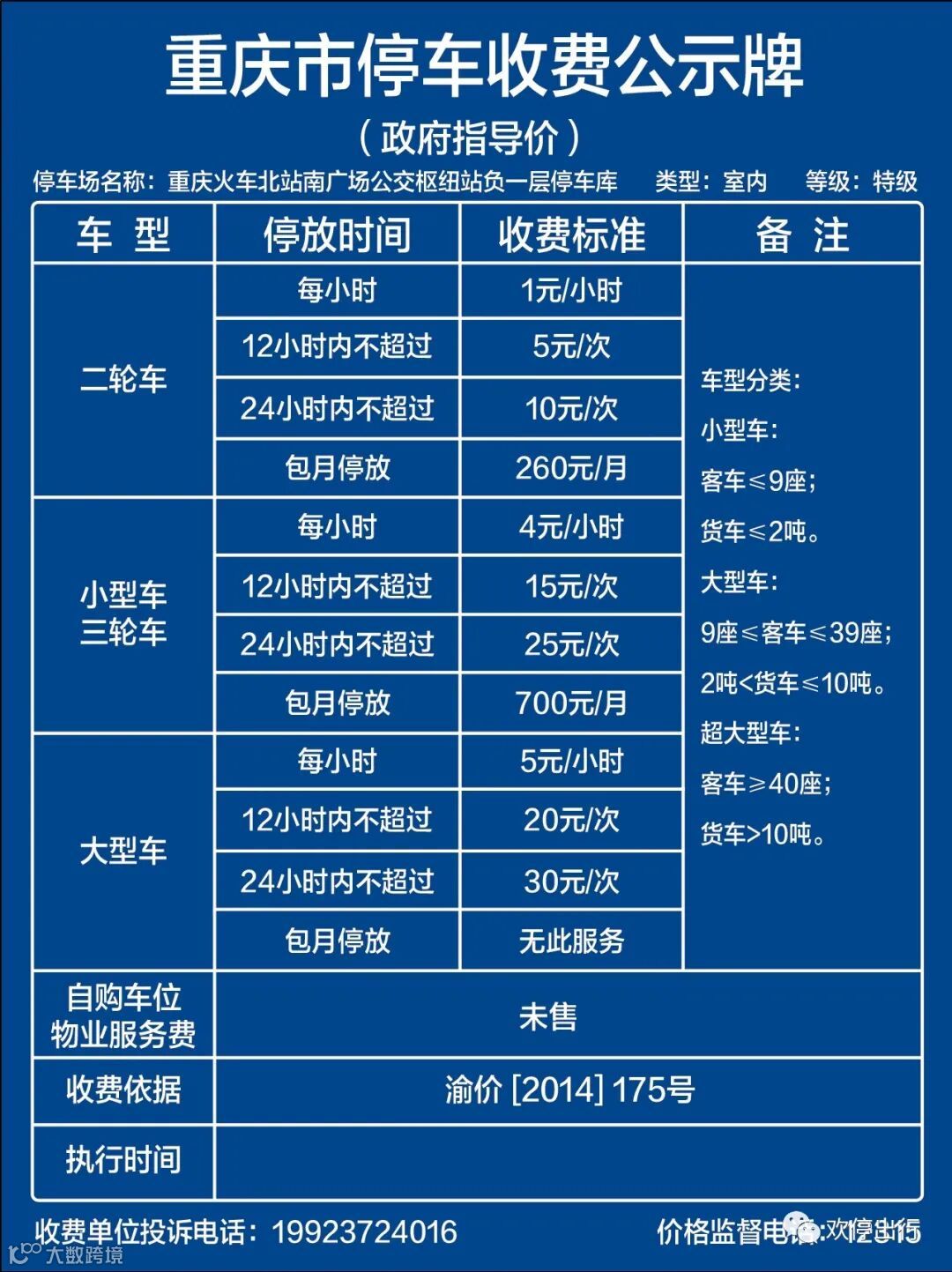 重庆北站南广场停车场的收费标准严格按照公共停车设施收费政府指导价执行。