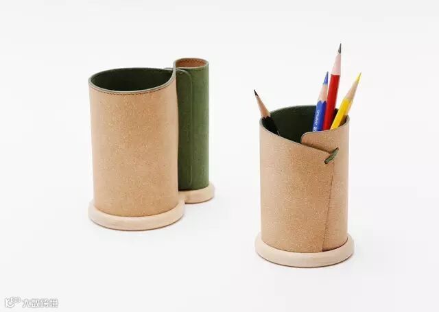 SWBK设计团队还用了再生皮革材料,与木相结合制作出别出心裁的文具套装。