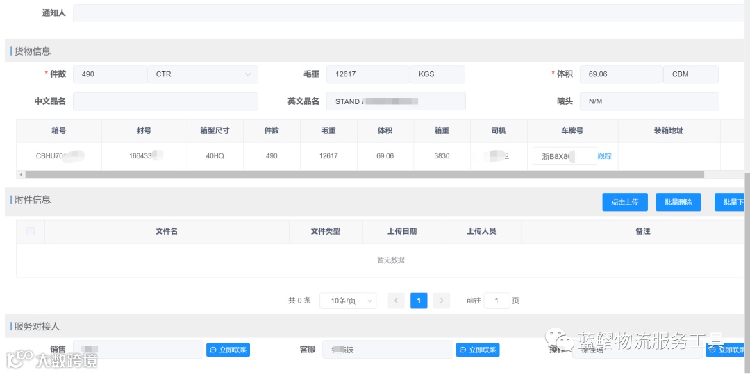 3、订单的相关详情可以随时查看订单的详细信息,如:件毛体、收发通、船舶定位、 装箱信息、GPS定位,海盟的操作销售客服联系人(可QQ直连)