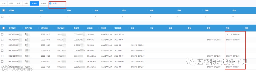 2、勾选左上角时间,可以查看每票单子的每个阶段对应的时间节点