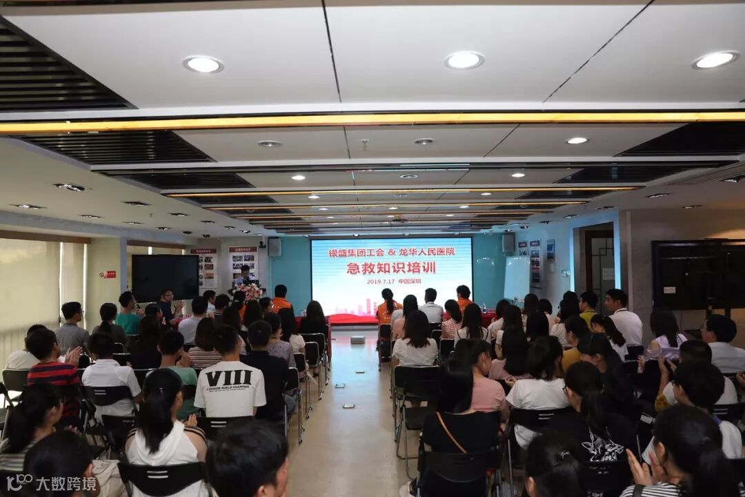 为增强全体员工的安全防范意识,掌握基本的应急救护知识与技能,在意外伤害发生时能够及时有效地自救互救,最大限度的减少生命及财产损失,7月17日下午,银盛集团工会联合龙华区人民医院开展了急救知识培训。银盛集团总部各部门、各子公司员工代表,以及来自深圳各个学校的21名志愿者参加了此次培训。