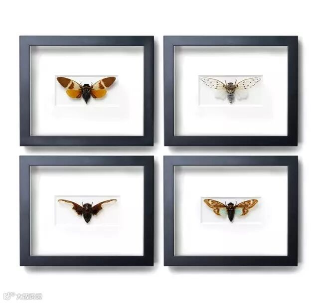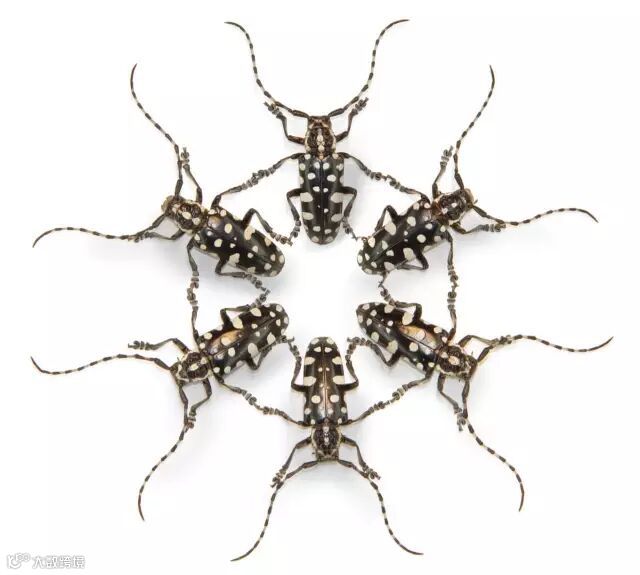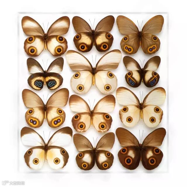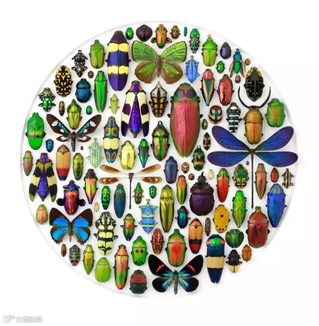 他通过不同的摆放制作的昆虫标本不同寻常,更具观赏性和艺术性。优雅的光泽,颜色的搭配,自然的对称,多变和重复......让生命之美再次展现。