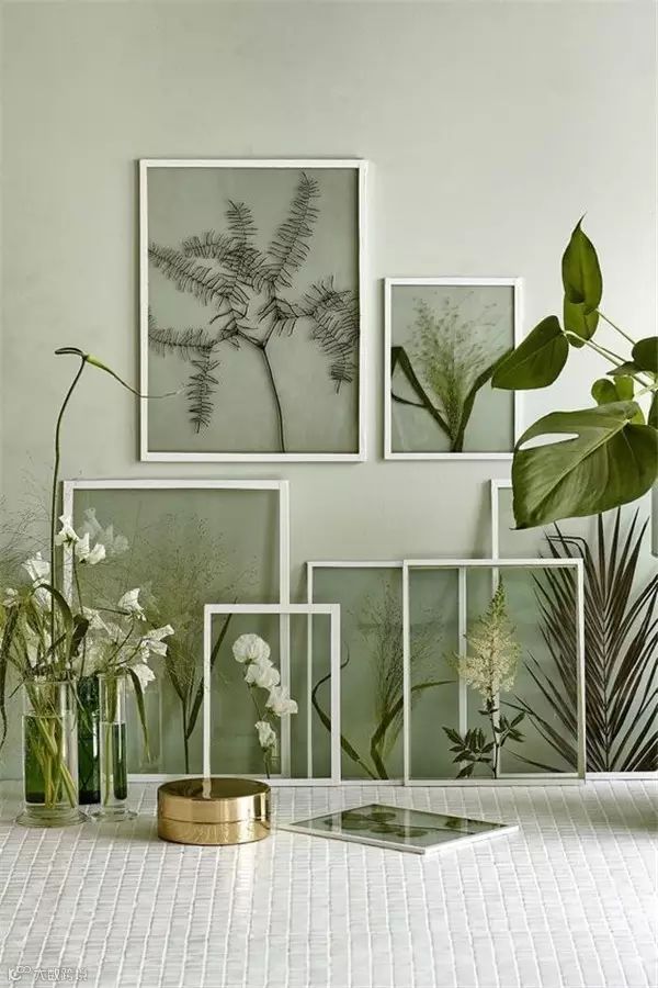 比起鲜活的绿植,用相框装裱的植物标本集中挂起来之后就像相片墙一样,成为家中一道独特的、不会褪色枯朽的风景线。