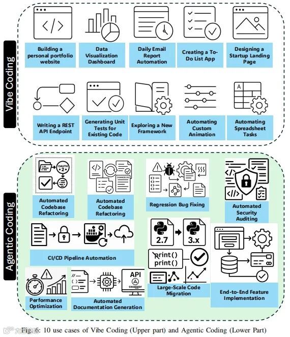 论文的结论部分提出了一个重要观点:Vibe Coding与Agentic Coding并非对立,而是互补的。未来的软件开发范式,可能是“前端创意用Vibe,后端执行用Agentic”的混合模式。