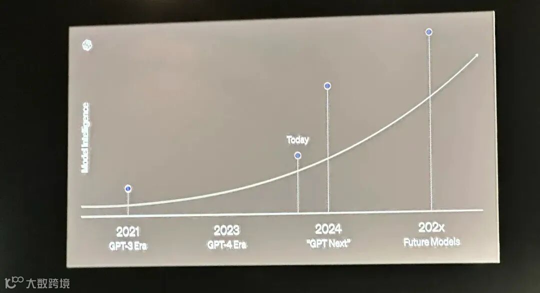 幻灯片显示了 GPT-3 时代、GPT-4 时代和“今天”以及 GPT-Next,并没有出现 GPT-5。