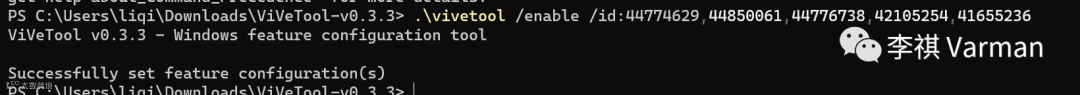 通过 CD 命令,进入到 ViVeTool 所在文件夹