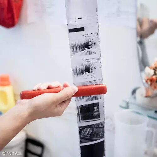 25:将冲洗好的胶卷晾晒在卫生间等不容易沾染灰尘的地方,底部用夹子夹住,以保证晾晒后胶卷平直。