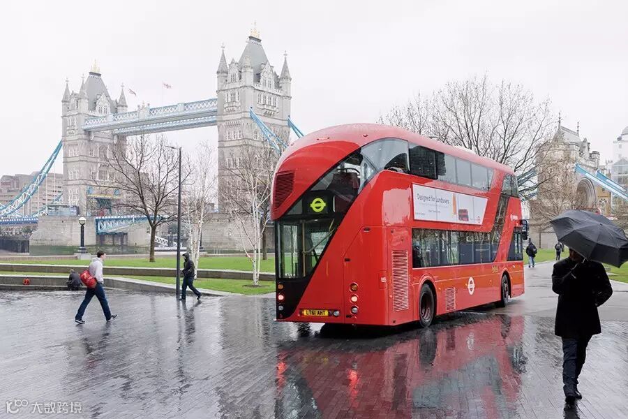 为2012年伦敦奥运会设计的红色双层巴士,新增了全景式车顶,车身中间多了一道车门。