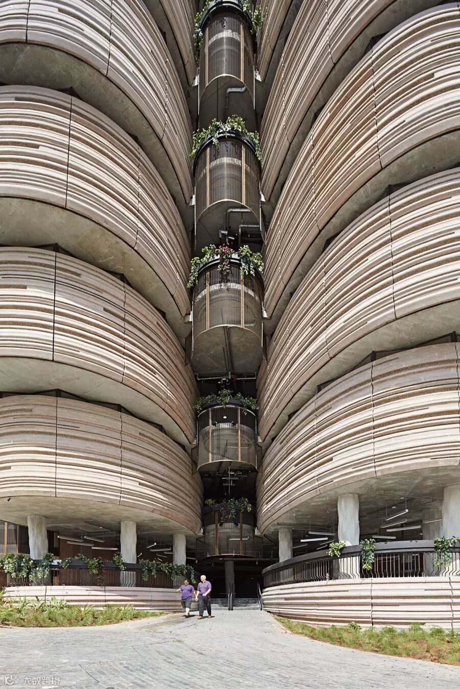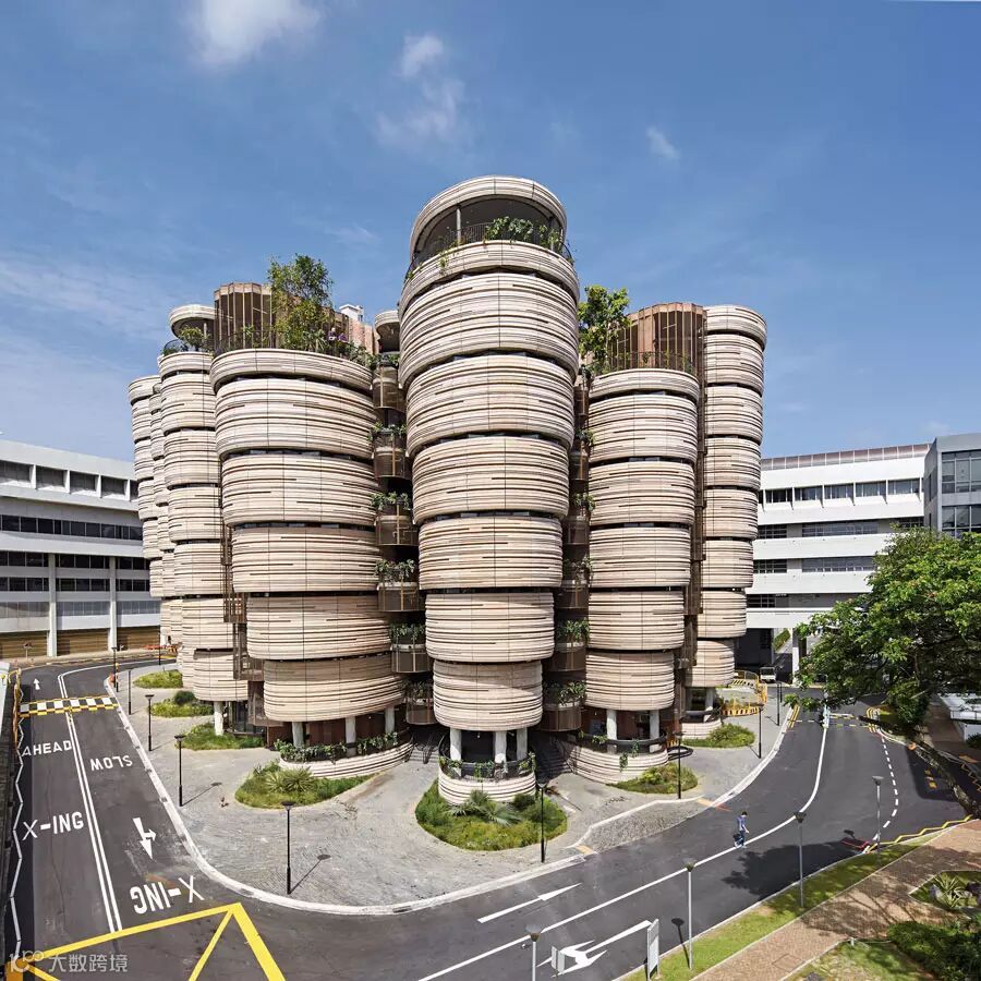 新加坡南洋理工大学学习中心,被赫斯维克设计成一 栋多孔状建筑,学生可以从各个方向进入到一个巨大的中心公共空间内,12个塔楼都由一间间教室逐层建造堆叠而成,各自很小却能完成不同教学功能。人们还可以在走廊、花园里休息,会面,交流。