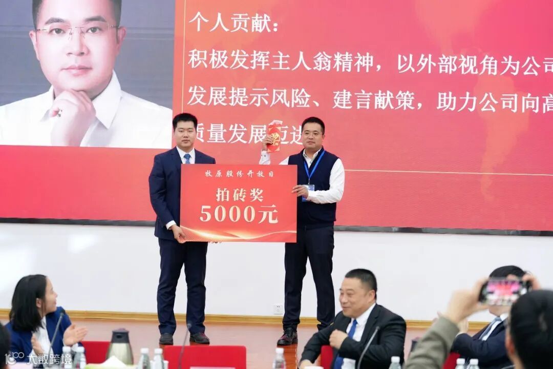 座谈会上,首席财务官高曈向牧原的忠实股东李晓东先生,授予牧原史上“第一个股东拍砖奖”。高曈表示,李晓东一路陪伴牧原成长,提出的很多建议,变成了公司管理升级的措施。他代表着一批股东,无论顺境逆境,坚定支持牧原。希望未来开放日上有更多股东,给予牧原发展上的建议。