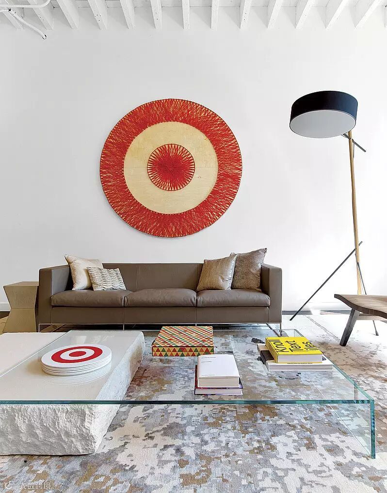 彩色的家具、饰品和灰灰的墙与地,刻意营造这样的视觉反差。