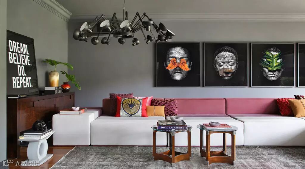 热爱旅行的屋主从世界各地搜罗来的美物将自己的家填满,房间的雕塑和墙面、家具都向后现代的结构主义致敬。