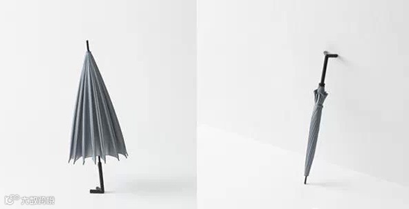 nendo 设计工作室的新作“Stay-Brella”雨伞长出了脚。但并不只是浮夸的脚,底部的设计使长柄雨伞不易放置的缺点得以解决,您可以把它靠在墙边,挂在绳上,实在找不到地方,就让它自己站着。