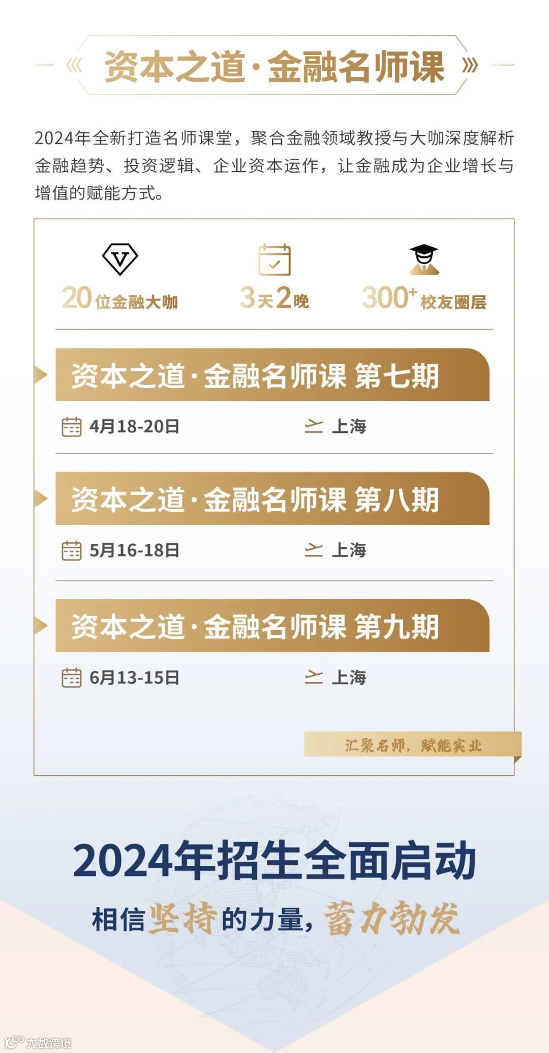 *复旦金融汇专注于企业家赋能与专业内容提供。更多2024年课程详情与更多干货,欢迎关注复旦金融汇公众号: