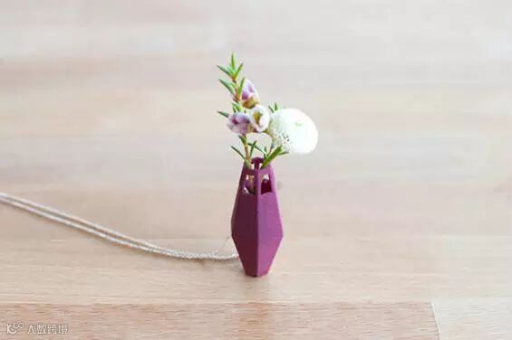 来自美国的 Colleen Jordan 使用建模软件来设计这些可穿戴式小器皿,并使用尼龙塑料3D打印后再手工染色。Colleen 的小物件不仅有鲜亮的色彩,还可以让你把花朵、蕨类等植物以项链、胸针、戒指的形式戴在身上。