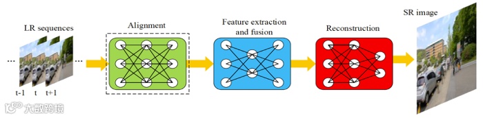 视频与图像类似,分辨率的提升对于提升视频质量也至关重要。与图像超分最大的不同,就是视频可以利用多个连续的图像/帧之间的相关信息,提升目标图像/帧的分辨率。虽然可以将视频拆分成多幅图像,然后用图像超分算法进行处理,但是会造成帧与帧之间出现不连贯的失真。近年来出现了一大批优秀的应用于视频的超分算法,以图像超分算法为基础,通过增加相应的模块来挖掘帧与帧之间的特征,从而提高视频超分算法的性能。