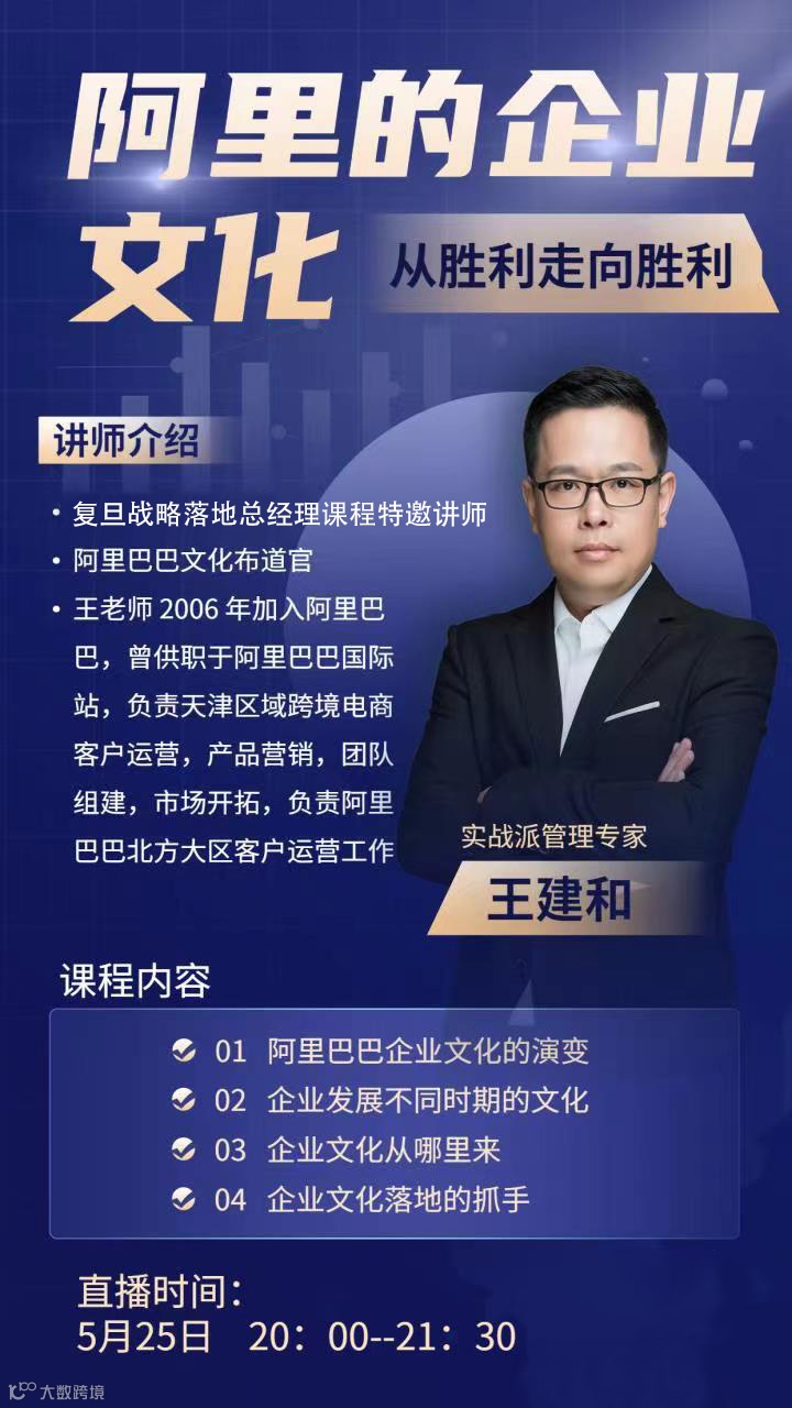5月25日,邀请到复旦战略落地总经理课程特邀讲师、曾任职与阿里巴巴国际站的王建和老师,一起来探讨阿里巴巴的企业文化及落地。