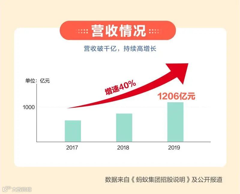 2019年蚂蚁集团营收为1206.18亿元,突破千亿大关,2018年这一数字为857.22亿元,同比增幅超过40%。
